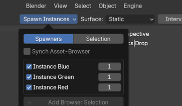 Sync AssetBrowser Synchronize the selected assets from your Blender asset browser as instances in your instancing list. Everything will be imported and enabled automatically. This option makes for a highly efficient workflow when you're working with a lot of assets.