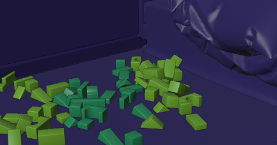 Like Manual Mode, points are manually encoded within a mesh. In Physics Mode, instances settle through rigid body simulation, then get encoded as distribution points.